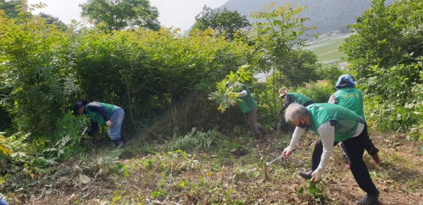 충주시 연수동새마을(협의회장 김영호, 부녀회장 우혜진)회원 15명은 2021.06.12.(토) 대소원면 문주리에서 도라지를 심기위한 밭 만들기(개간)작업 일손돕기를 하였다.