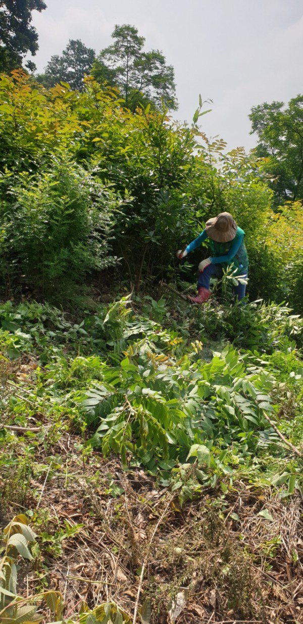 뜨거운 날씨 도라지 재배를 위한 새로운 농지를 만들기 위해 나무제거와 돌 고르기 등 힘든작업을 실시한 회원들의 땀과 노력이 좋은 결실로 맺기를 기대한다.